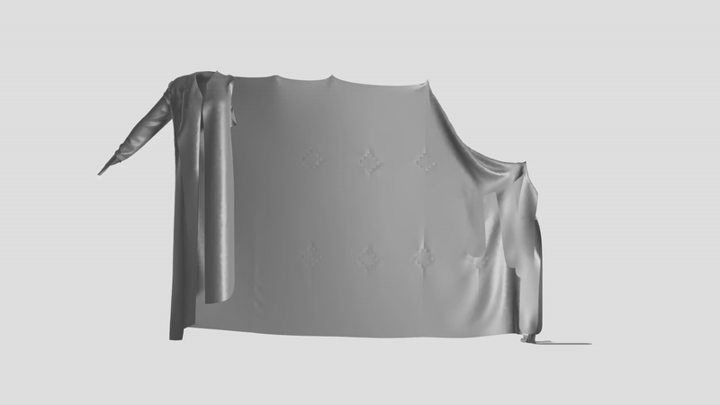 A peek into our private yet performative space, this work questions the way we often perceive ourselves through the lens of others, and how this line between both perceptions is often inseparable. This is explored through the performer who struggles to navigate her attention between herself and the audience, the intimate yet at times other-worldly music, and the digitally modeled costume that emphasizes the ephemeral aspect of feeling shielded, as it keeps falling down and exposing the body. This is also in the design of the costume itself, which is transformed from the deconstruction of a monastery into a masculine oversized blazer, a feminine slip dress, a comfort blanket, a bedsheet, a tapestry that hangs on your wall and surveils you.