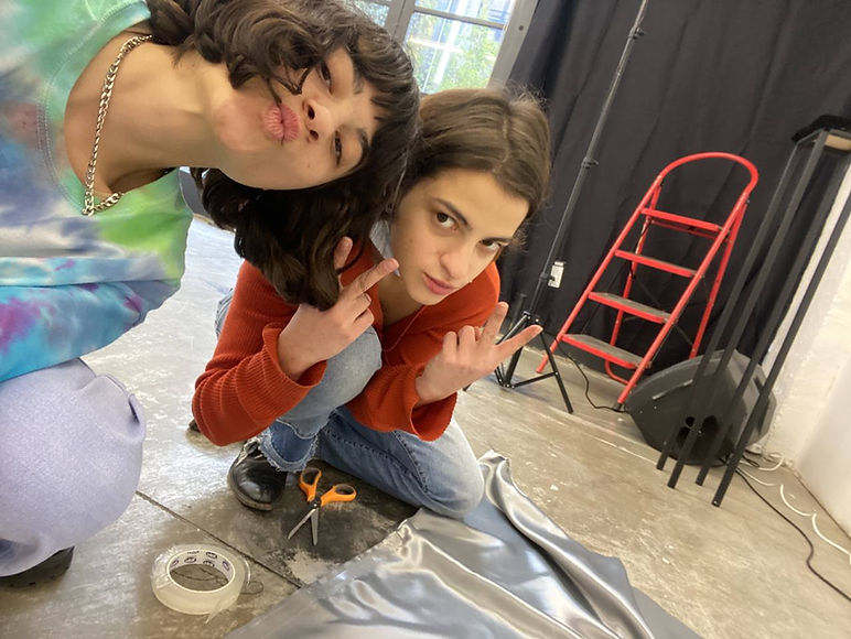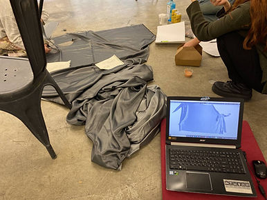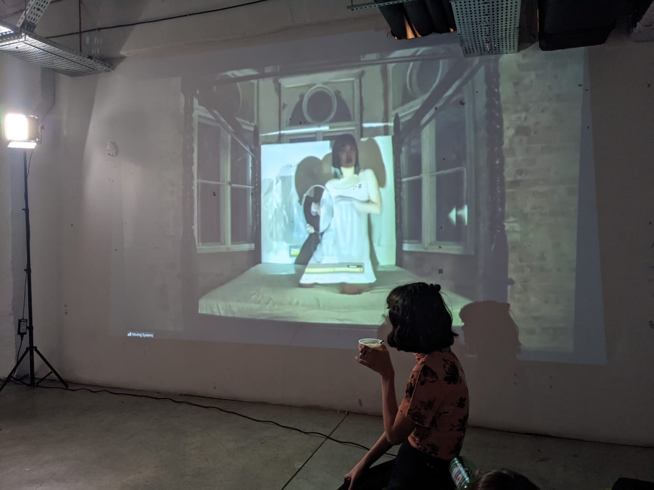The performance consists of different elements that overlap through techniques of projection, reflection, and feedback loops. In Berlin, SueKi dances to live music by Cem on a 4 poster bed, interacting with her silhouette, a mirror, and the projection of a chrome costume digitally modeled by Tikuna based on an actual costume created by Gvantsa. This performance is streamed and projected onto the actual costume in Tbilisi, and this screening is streamed back to Berlin and used as cuts in the projection on the bed.The performance consists of different elements that overlap through techniques of projection, reflection, and feedback loops. In Berlin, SueKi dances to live music by Cem on a 4 poster bed, interacting with her silhouette, a mirror, and the projection of a chrome costume digitally modeled by Tikuna based on an actual costume created by Gvantsa. This performance is streamed and projected onto the actual costume in Tbilisi, and this screening is streamed back to Berlin and used as cuts in the projection on the bed.